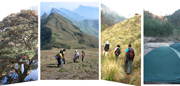 Starting the trek from an altitude of 1500 m, we gradually ascending to over 2600m, passing through sholas (high altitude rain forests) and grasslands which are typical to the higher areas of the Western Ghats . The area also has wildlife – notably elephants, sambar, sloth bear and the Nilgiri tahr - the latter being endemic and endangered. The camp is set up at an altitude of approximately 2200m. On the second day, trek will be along paths over the undulating mountain grasslands and ascend Meesapulimala - the second highest peak in the Western Ghats. This is a great opportunity to trek off the normal tourist trails. After descending, continue trekking through grasslands and high altitude rainforest till reaching the Kollukumalai tea estate. Spend the evening at the Anaerangal Camp at Suryanelli with a spectacular view of the Anaerangal Lake and the high altitude rain forests below.